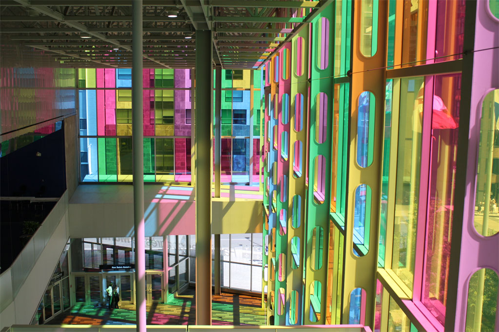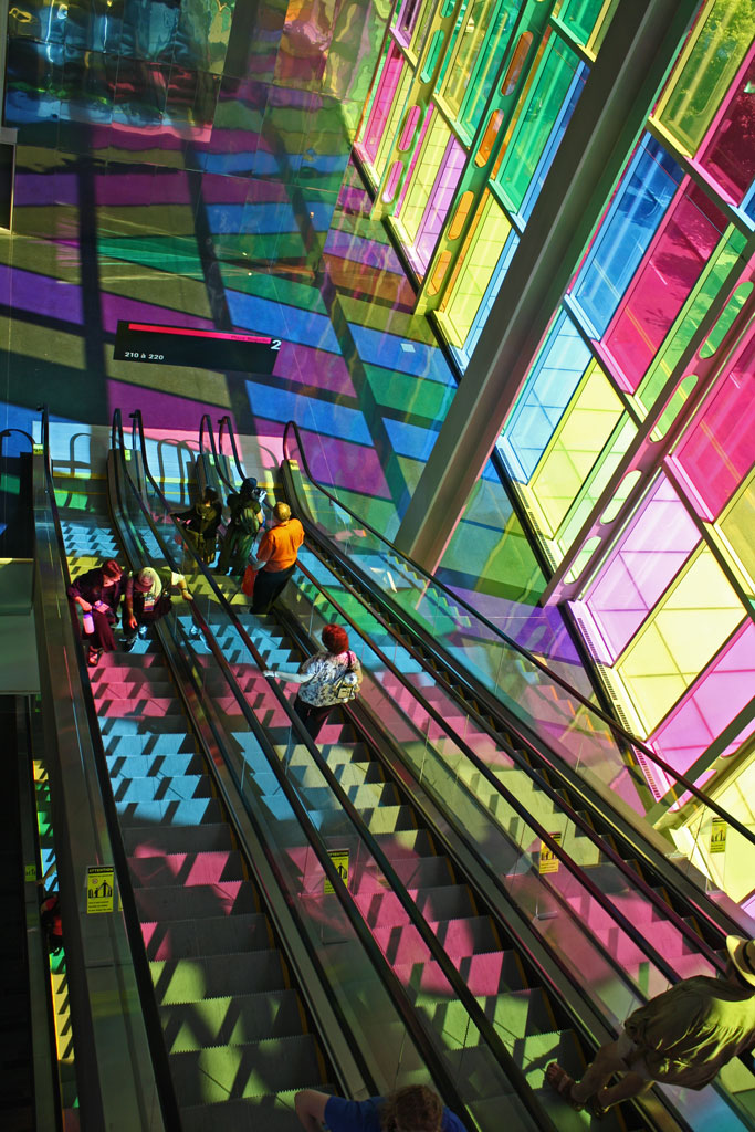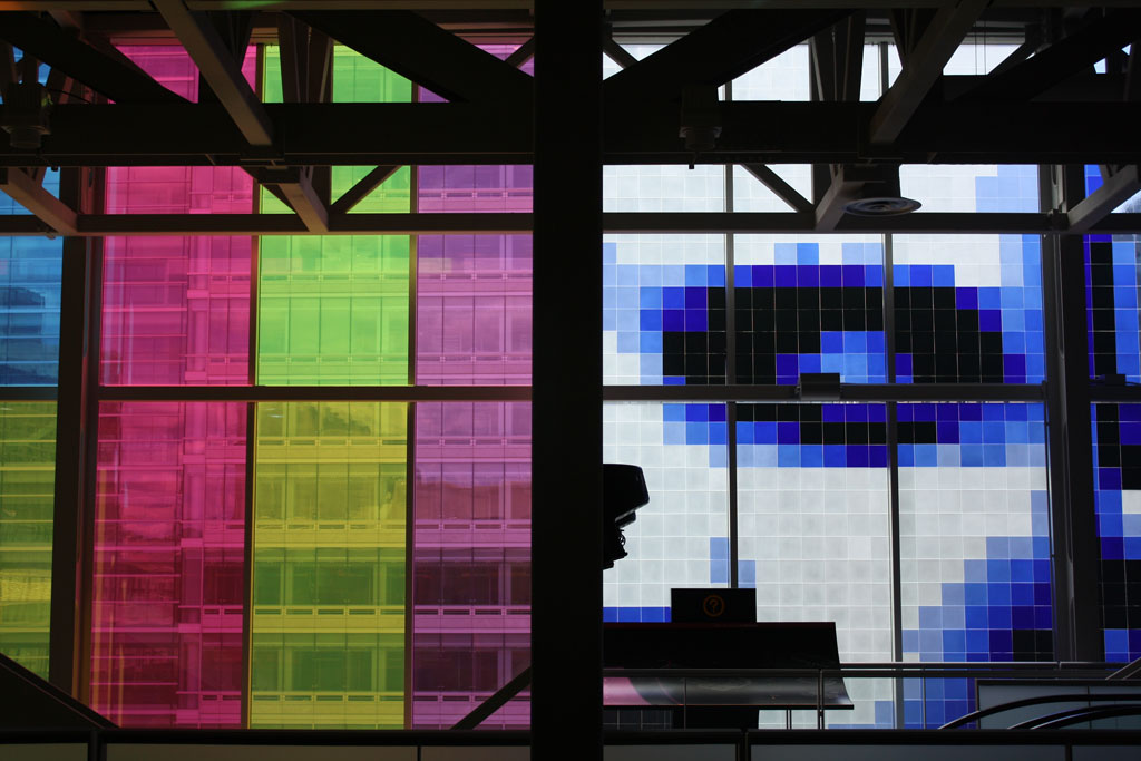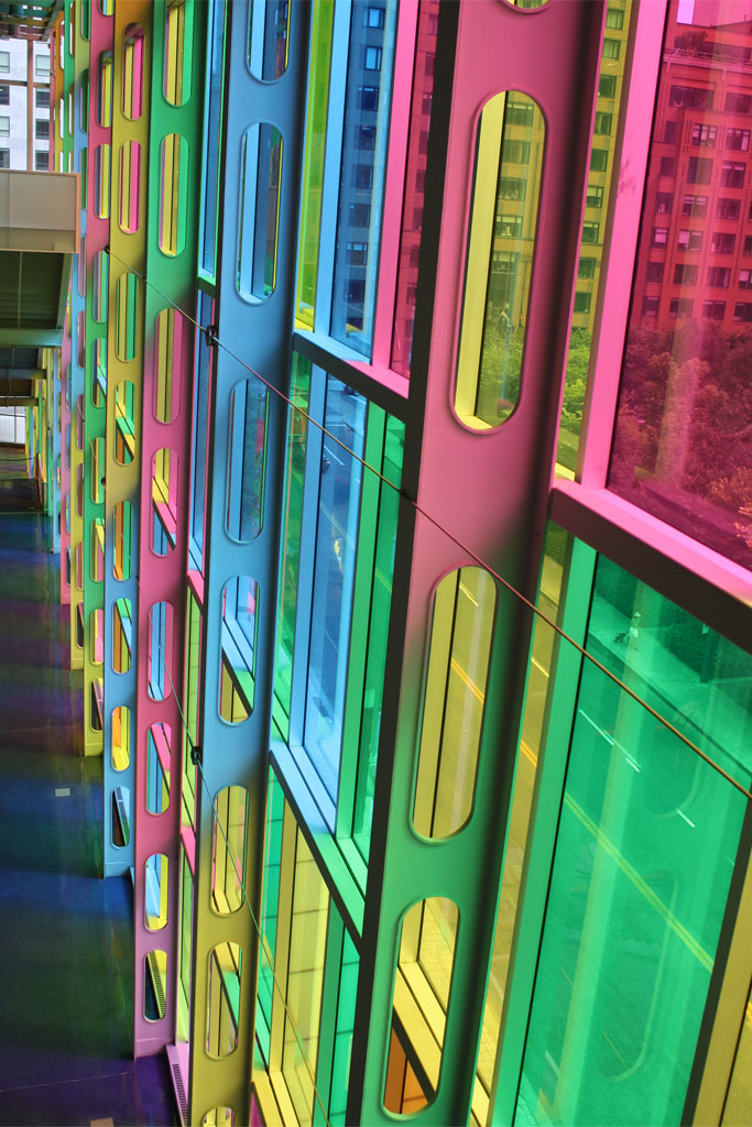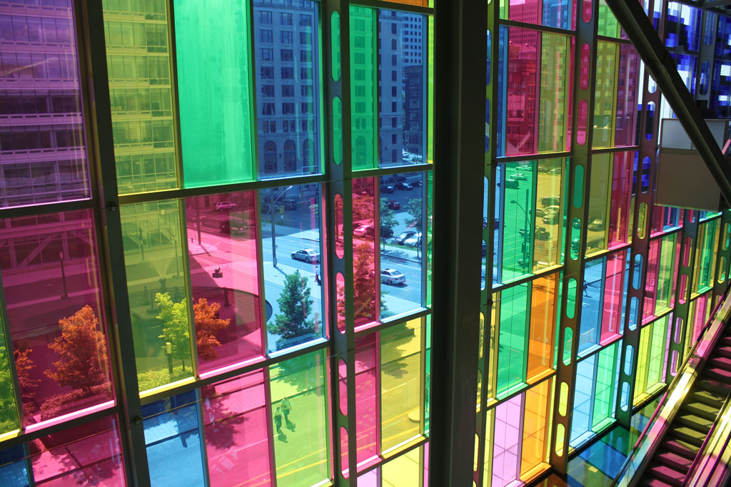 Aug. 17th, 2009 11:41 pmLet's get this out of the way first. Recall that the west side of the Palais has these funky colored windows. Whenever I couldn't think of anything better to do, I took pictures of the windows. On the one hand, they're really cool; on the other hand, they get to be the visual equivalent of ambient music.