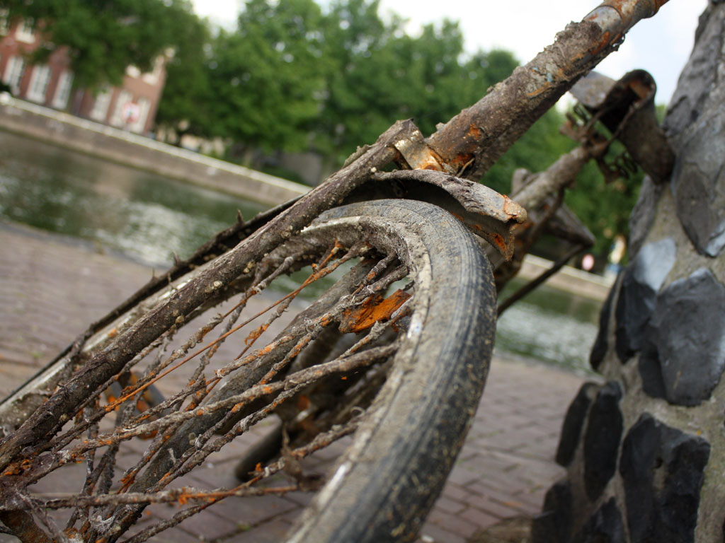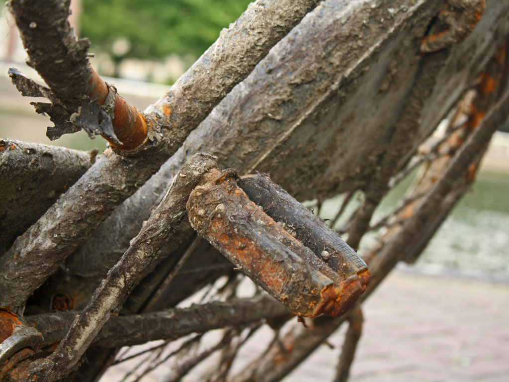 Aug. 22nd, 2010 01:03 pmThis is actually one of the last things I saw in Amsterdam. Out at the end of the pier that science center NEMO is built on, I found this incredible derelict bike, covered with rust, seaweed, and barnacles.