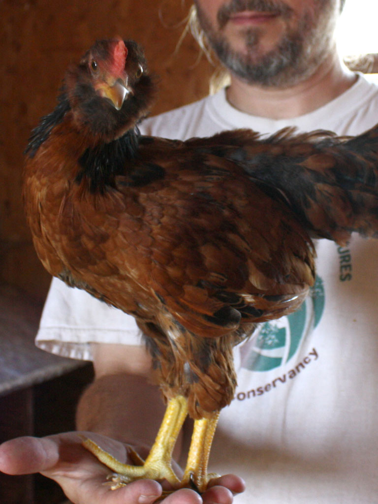 Some old hippie with an Americauna pullet.
