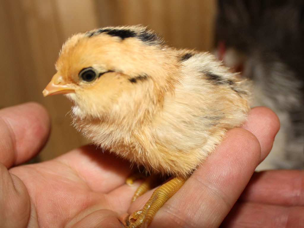 Our little broody girl Tuulikki, who's been sitting on eggs (mostly not her own) for a couple months, hatched this by herself. We found the shell last night, chalked it up to damage and/or egg-eating, but didn't actually find the chick until this afternoon.