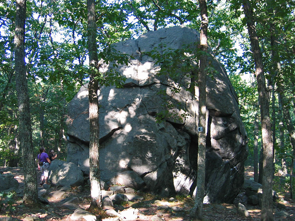 And then there's this glacial erratic, "an enormous stone monolith that climbers use to practice elementary climbing techniques." Francie and Kylie are both climbers, but didn't bring their climbing shoes, and ordinary hiking/walking shoes aren't up to it.