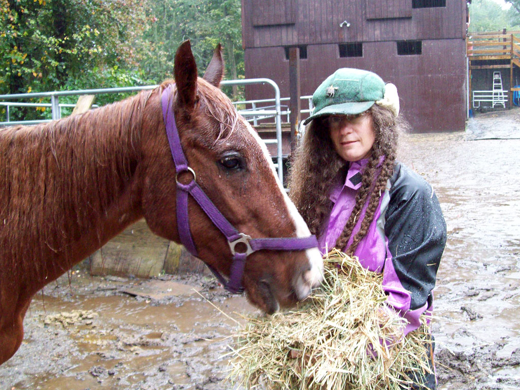 lyonesse, feeding him hay. He still has a good appetite, despite having some dodgy teeth, and despite a rather severe case of diarrhea - also not good for keeping weight on the skinny old horse.